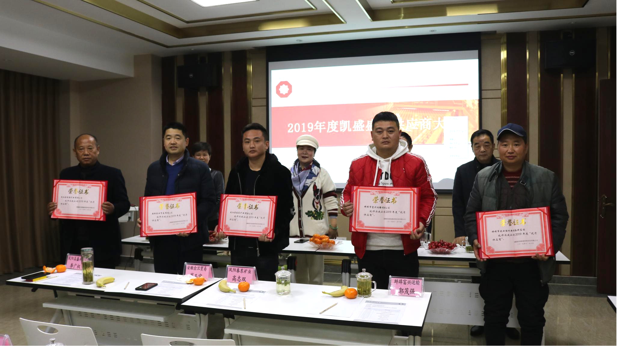 2019年度公司從品質(zhì)、價格、供貨及時性、服務(wù)、共擔(dān)風(fēng)險等各方面綜合打分遴選出前5名作為優(yōu)質(zhì)供應(yīng)商進(jìn)行表彰。由副總經(jīng)理王年孝宣讀“關(guān)于2019年度優(yōu)質(zhì)供應(yīng)商評選的決定”并頒發(fā)榮譽(yù)證書。