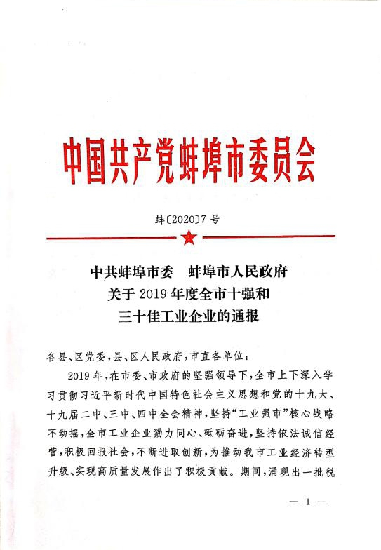 盛世新能源榮獲蚌埠市 “三十佳工業(yè)企業(yè)”和“工業(yè)發(fā)展先進個人”榮譽